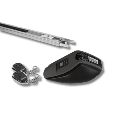 Kit automatizare pentru uși de garaj rezidențiale cu dimensiune de până la 15mp și greutate maximă de 100Kg. ROSSO-EVO-100CF de la Motorline, permite deschiderea