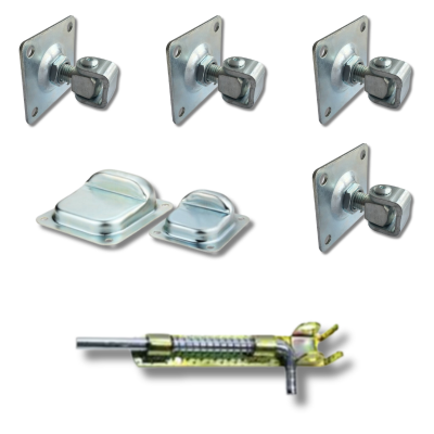 Specificații Balamale Diametru (mm): 16 Baza (mm): 80×80 Opritor Înălțime (mm): 50 Bază (mm): 158×138 Zăvor Înălțime (mm): 22 Lățime