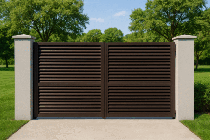 Poartă batantă metalică tip jaluzea – design modern și intimitate sporită