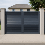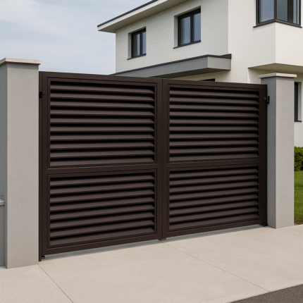 Poartă batantă metalică tip jaluzea – design modern și intimitate sporită